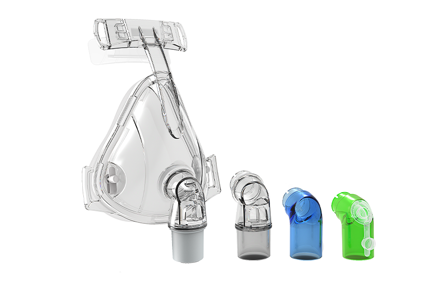 One mask body plus whichever elbow configuration is needed in the package provides a multifunctional NIV therapy interface kit.