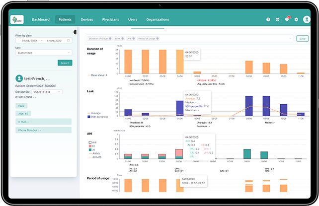 Therapy data from BMC devices are supported smoothly to transmit and upload to PAP Link Web. You can access the platform easily to follow up summary and detailed data statistics of your patients and devices, which will be valuable for ongoing patient care, and lower relevant cost of services.